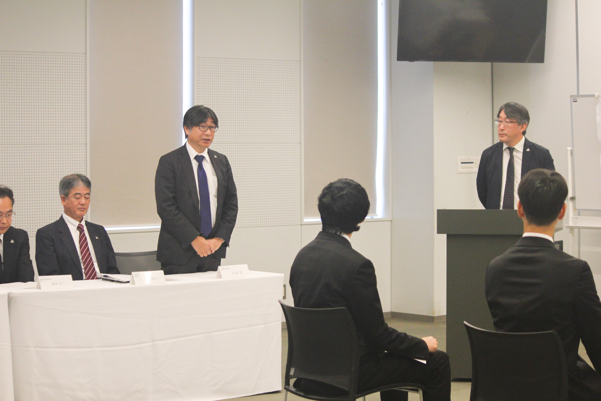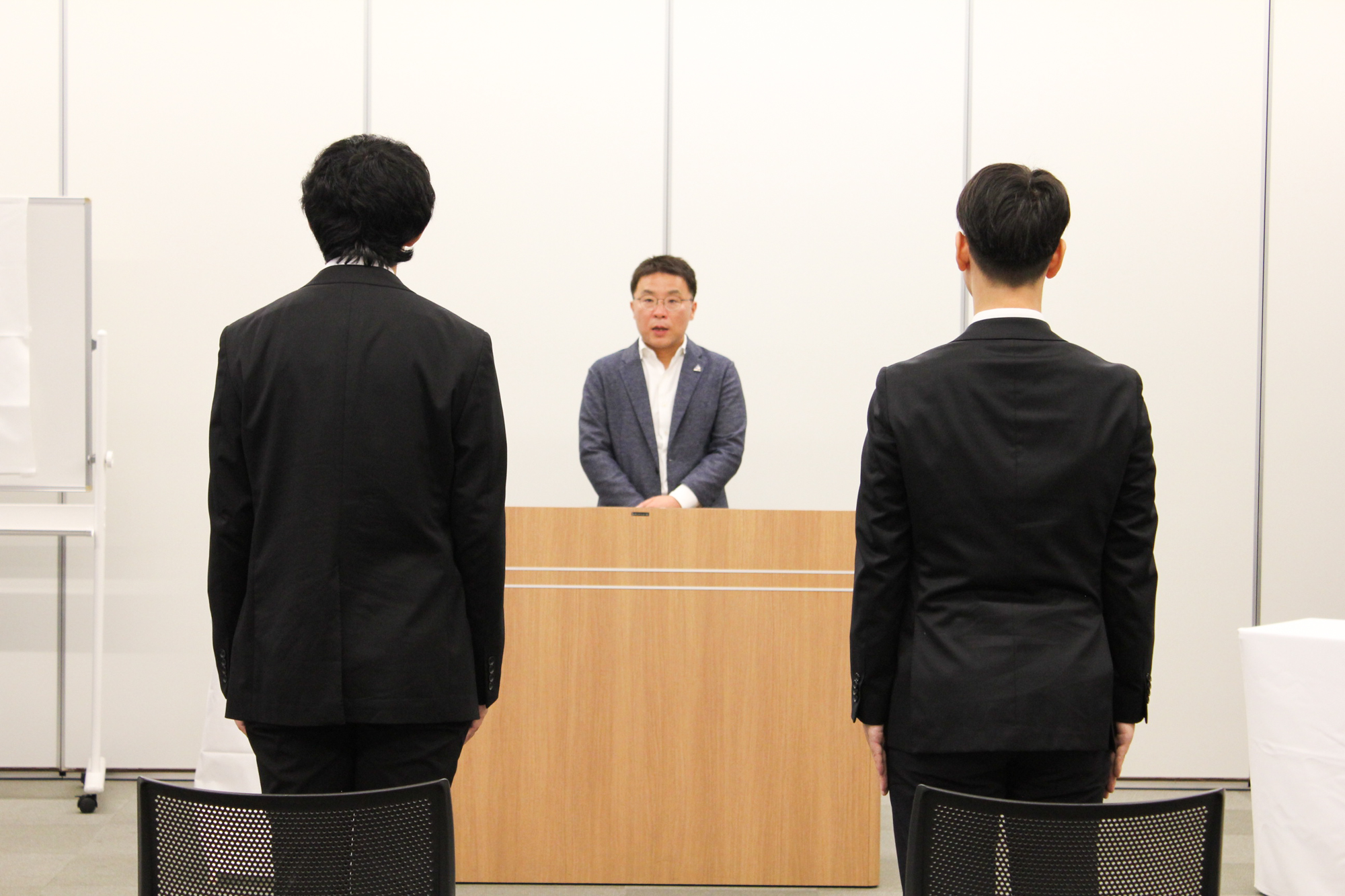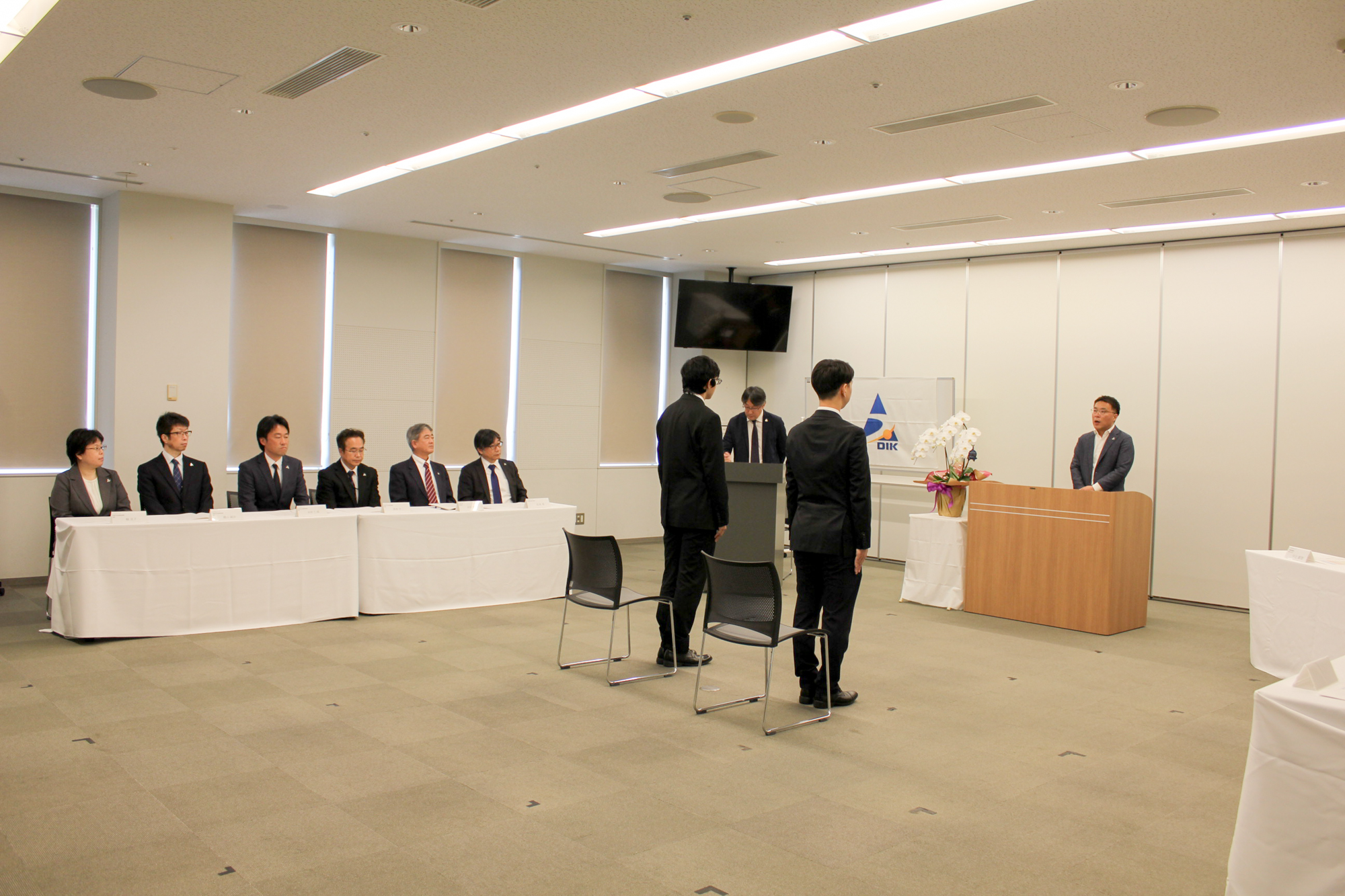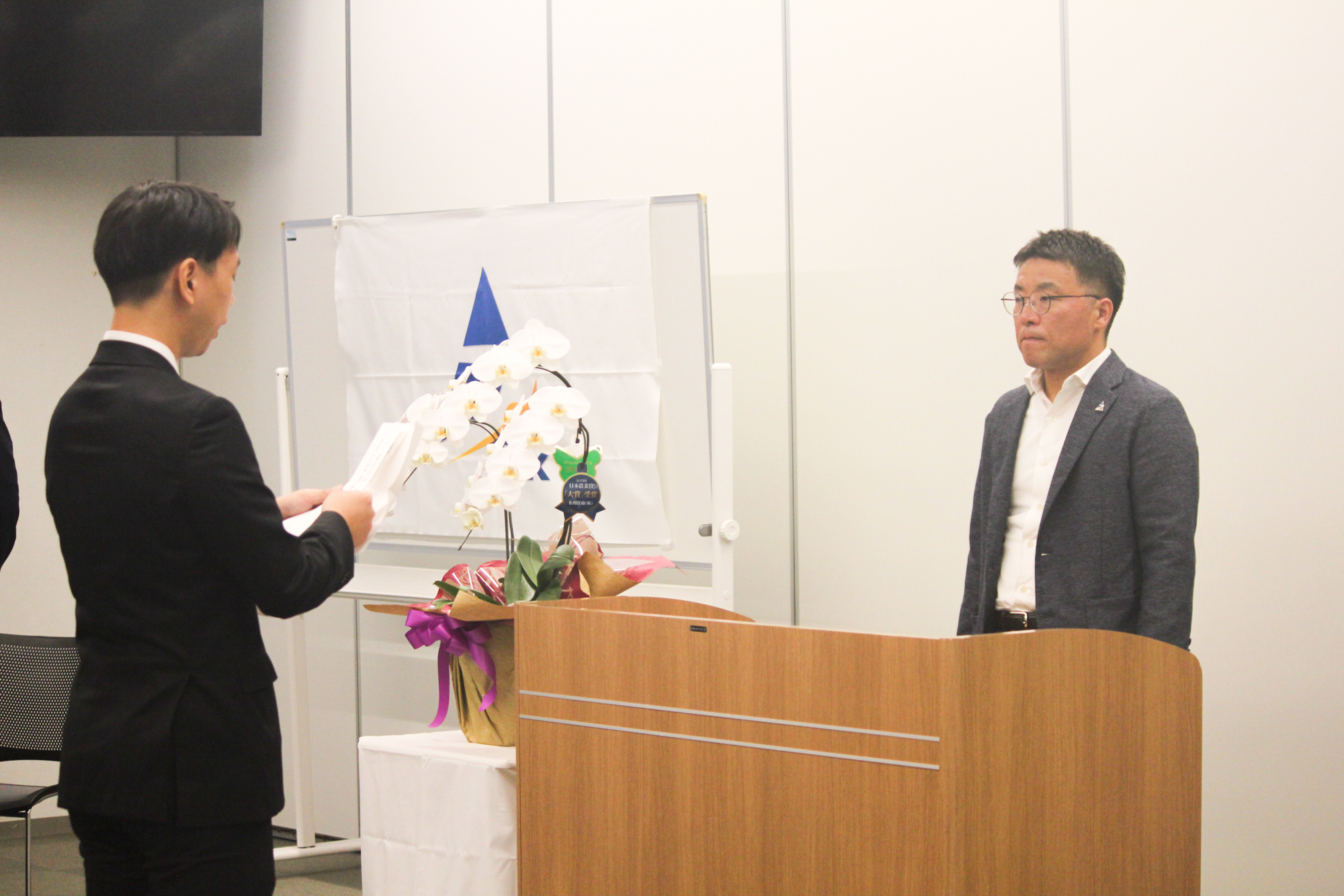 式典は、開式の辞により厳かに幕を開け、続いて取締役人事本部長より祝辞が贈られ、東海支社長より辞令交付が行われ、正式にダイキグループの一員としての第一歩を踏み出しました。